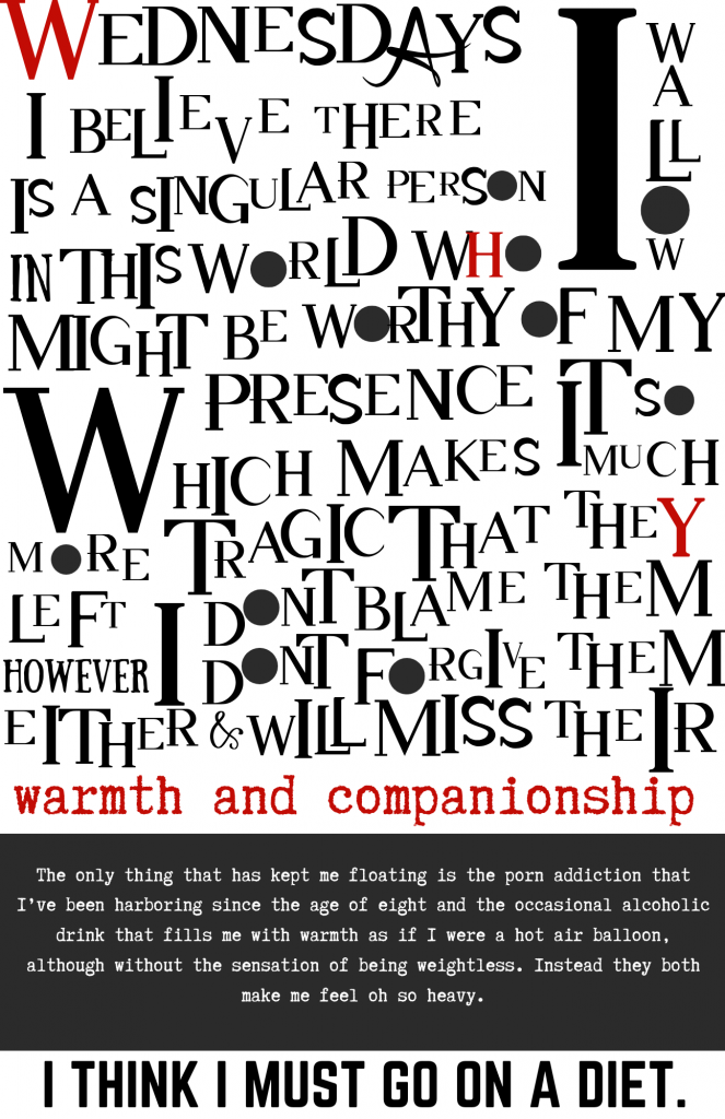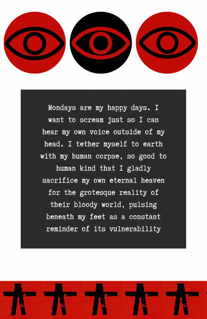 Written over the course of a lifetime, this short zine encompasses but a single week of madness. A cup of herbal tea will do you well as you follow me in this diabolical dance through my conscience. See you on the other side, my friend.